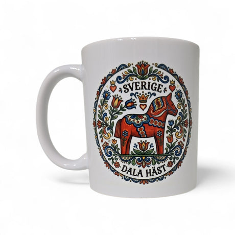 "Kaffetåren den bästa är av alla jordiska drycker" 11oz with Swedish Flowers