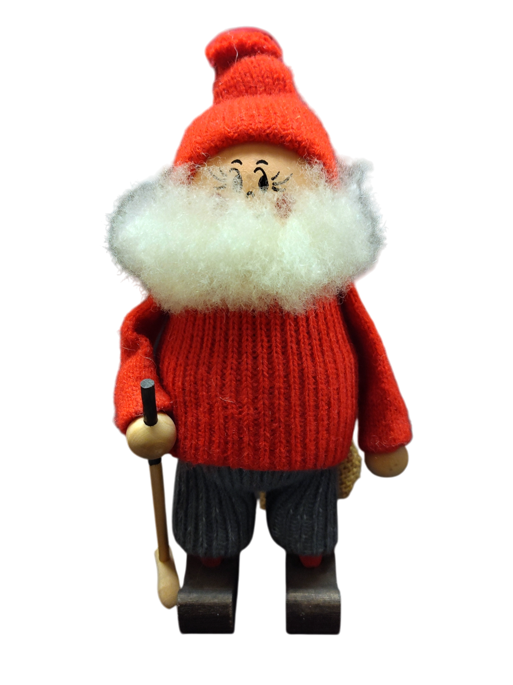 This charming Santa figurine adds a playful twist to classic holiday décor with a fun golf-inspired design. Santa wears a cozy red knit sweater and matching beanie, paired with soft gray knit pants and classic black wooden shoes. He features a full, fluffy white beard that gives him his timeless Santa charm. In one hand, he carries a wooden golf club, while a golf bag strapped over his shoulders rests on his back, complete with three golf clubs peeking out. Whimsical and full of personality, this figurine is perfect for golf lovers and makes a delightful addition to shelves, mantels, or holiday displays.