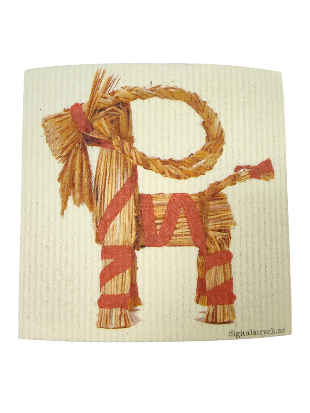 Dish Cloth: Straw Julbock Christmas Goat– Swedish Dishcloth – 7 5/8"x7 5/8"