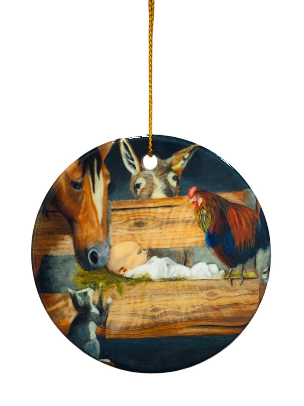 Ornament: Manger Scene with Barn Animals and Baby Jesus Ceramic Ornament