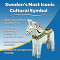 Dala horses are hand carved & painted wooden horses imported from the Dalecarlian region of Sweden. Every Dala horse is unique in its own way since they are traditionally carved and painted.
