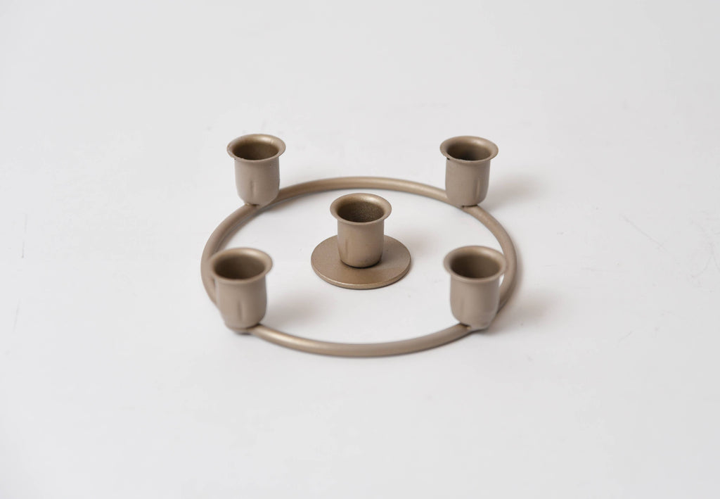 In this set, you will receive: 3 purple Timer Tapers to represent Hope, Peace, Joy; 1 Pink Timer Taper to represent Love ;1 White Timer Taper to represent Christ's Birth; 1 Gold Ring to hold 4 candles; 1 Gold Round Holder for in the center.
