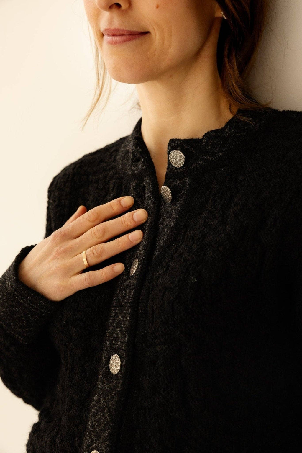 "A taste of Norway". Inspired by the Hanseatic houses on the Bryggen Wharf in Bergen. So feminine and simple - just a little pattern with beautiful pewter buttons - but so elegant and timeless. The structure of the knit makes the jacket beautiful, contemporary and it feels unbelievably comfortable to wear.