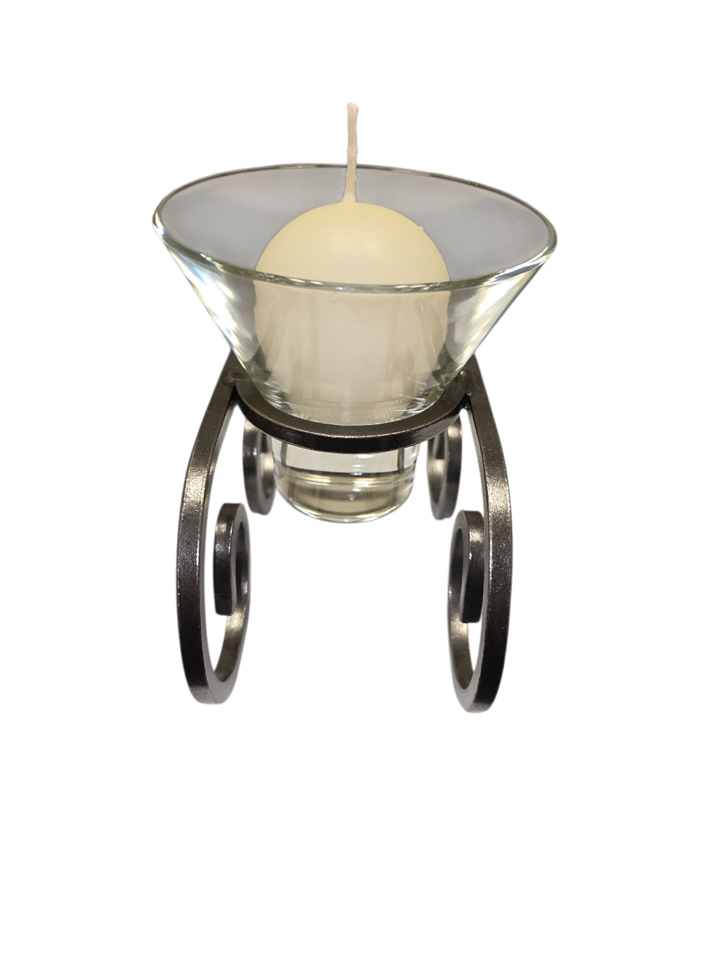 Danish Iron with Leif Glass Cup Ball Candle Holder