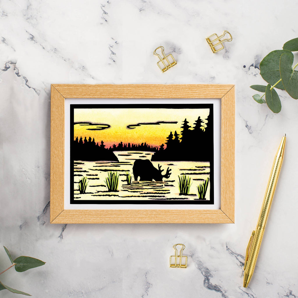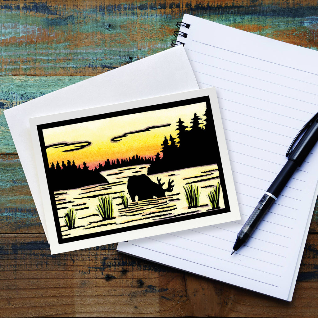 Evening Drink Moose by Sarah Angst 5x7 Greeting Card with Envelope Blank Inside