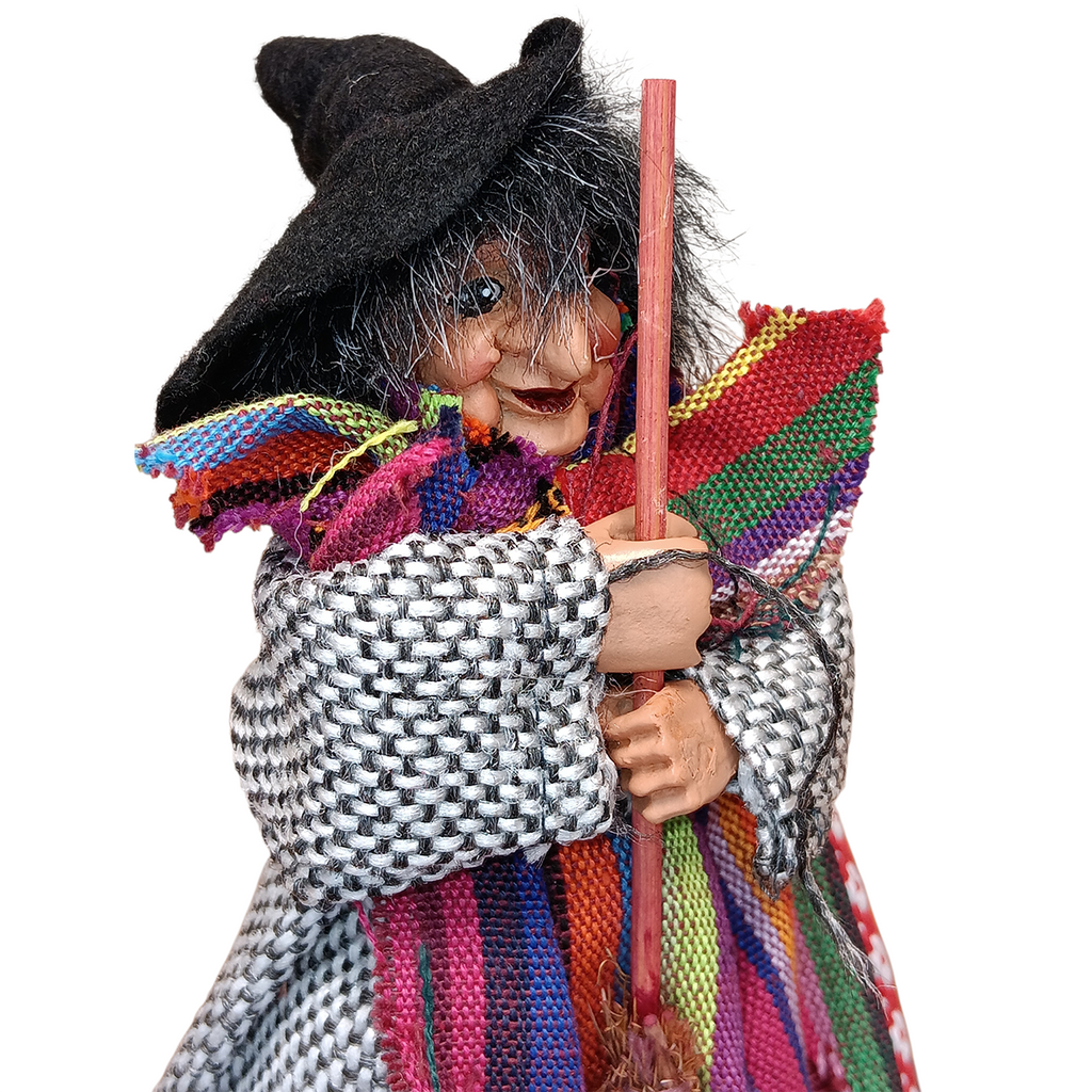 Yasmina Purple is a charming kitchen witch doll dressed in a green and white frock, vibrant multicolored scarf, and signature pointed black hat. With her distinctive long nose and dark hair, she clutches a miniature broomstick—the hallmark of this Northern European folk tradition. Kitchen witches, rooted in Scandinavian and German heritage, serve as protective household talismans believed to promote kitchen safety, inspire domestic productivity, and deflect negative energy from the home. Displaying Yasmina in your kitchen honors centuries-old custom while adding whimsical character to your space. A thoughtful gift choice, kitchen witches are traditionally given to loved ones as symbols of goodwill and domestic blessing.
