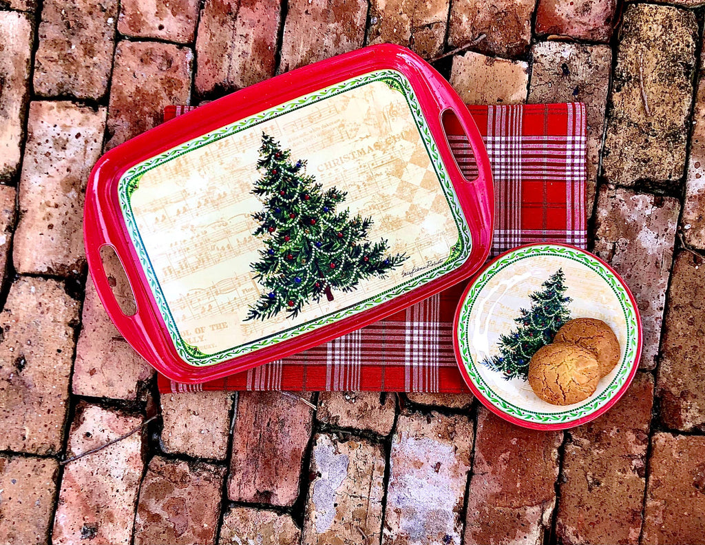 This beautiful eco-friendly bamboo serving tray is perfect for entertaining or beautiful artwork of a Christmas Tree for your coffee table! Shatter-resistant bamboo serve ware tray. Each eco-friendly tray measures 18” x 12”. Bamboo combines the look and feel of upscale dinnerware, all while keeping the Earth & ocean in mind. Our line is made from a by-product of bamboo manufacturing, which means after proper disposal our dinnerware will naturally return to the Earth within 20 years. Our dinnerware incorporates original artwork and designs from Sally Eckman Roberts.