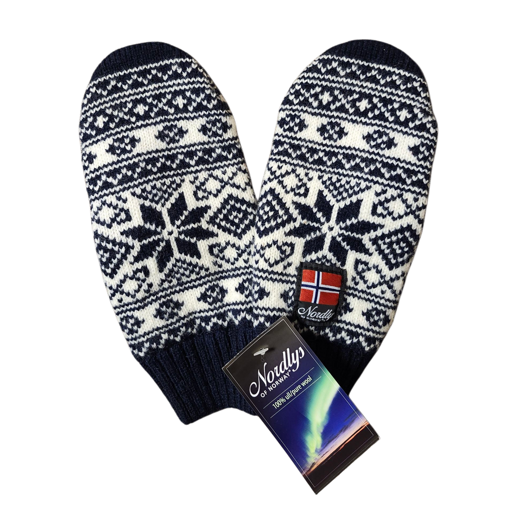 Wrap your hands in warmth and tradition with these classic navy mittens, featuring a timeless Nordic star motif. Expertly knitted from 100% Norwegian wool and lined with soft fleece, they offer natural insulation, breathability, and durability. Made in Norway, these mittens reflect the heritage of Scandinavian knitwear—perfect for cold winters, ski trips, or adding a touch of Nordic style to your everyday wardrobe.