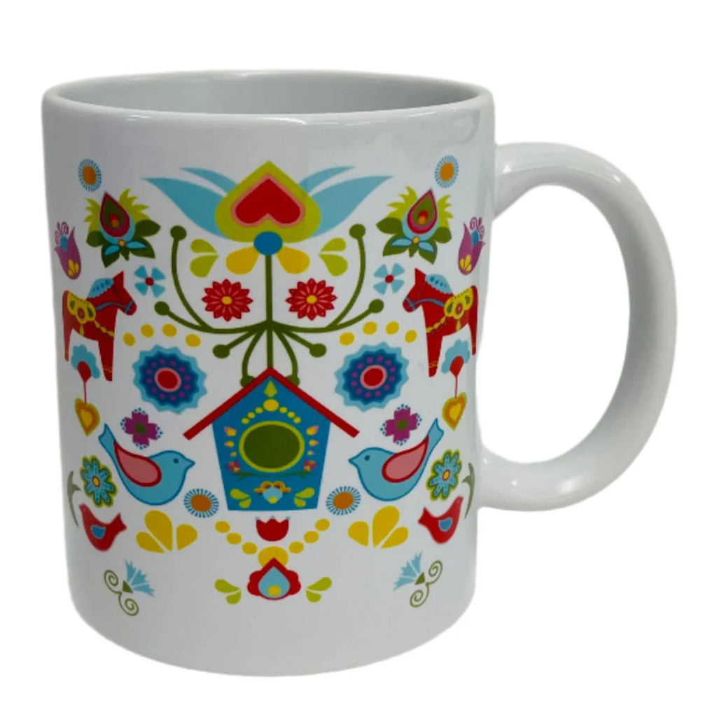 Swedish Dala Horses and Birdhouse Coffee Mug
