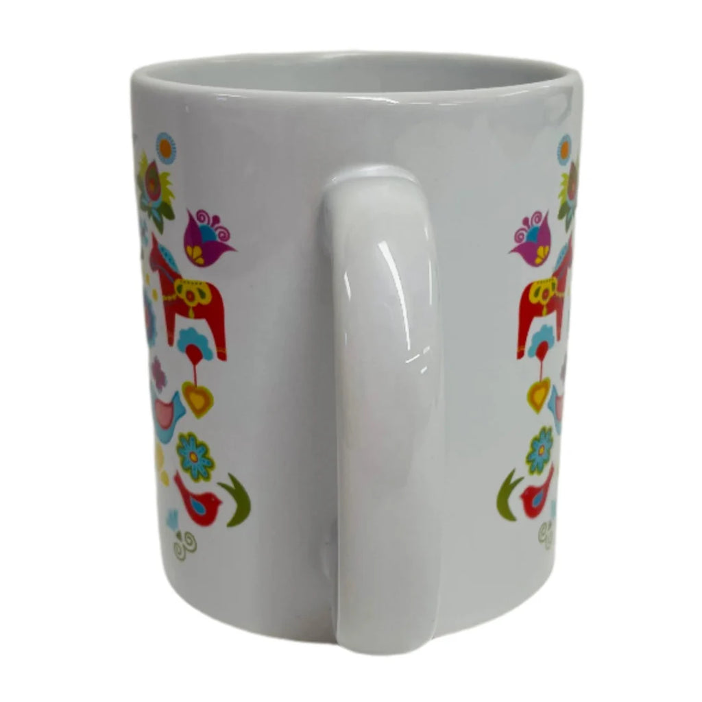 Celebrate Swedish charm and folk art tradition with our Swedish Dala Horses and Birdhouse coffee mug. This beautifully symmetrical design features classic red Dala horses, a cheerful birdhouse, and delicate flowers woven throughout—creating a balanced, eye-catching pattern that captures the heart of Scandinavian design.