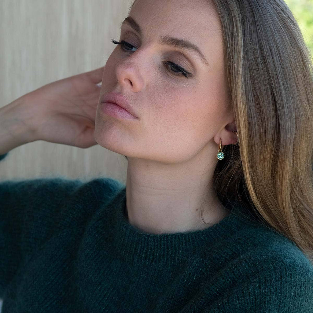 Add a touch of elegance to any outfit with these beautiful earrings. Each earring features a round, pale green Swarovski crystal—about 1.5 cm in diameter—that catches the light with a soft, sophisticated sparkle. The crystal gently dangles from a classic 2.5 cm hoop, creating graceful movement and timeless style.