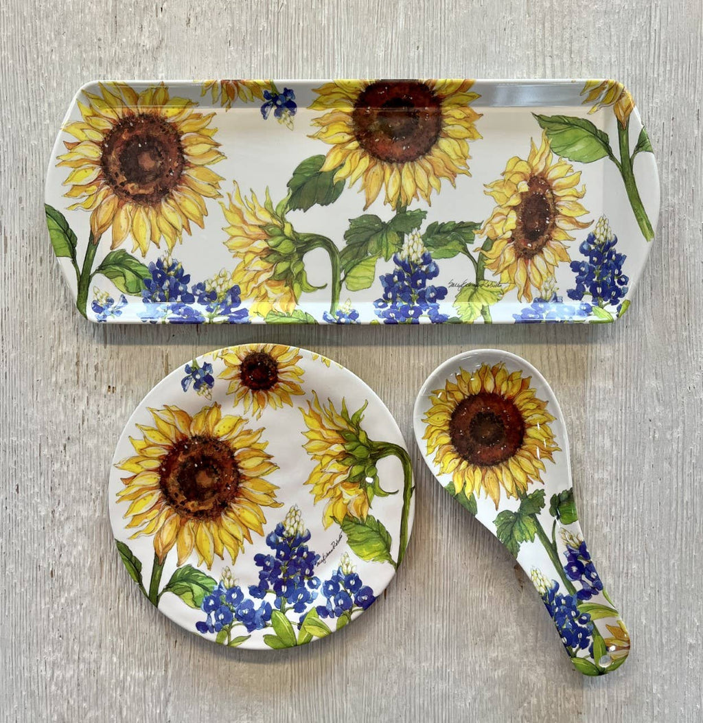 Sunflower & Bluebonnets Floral Flowers Bamboo Spoon Rest