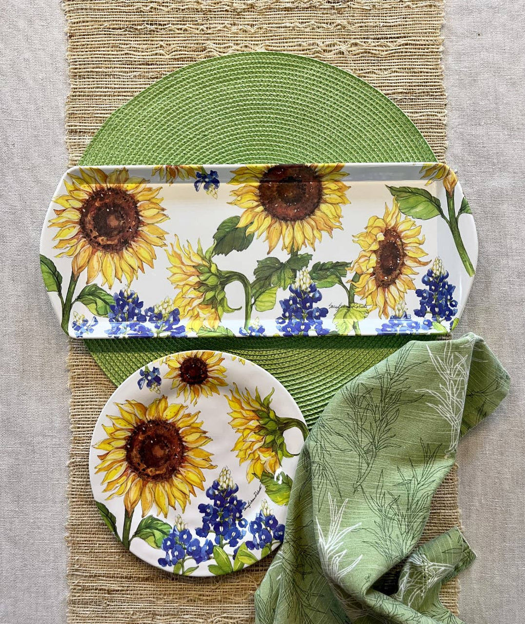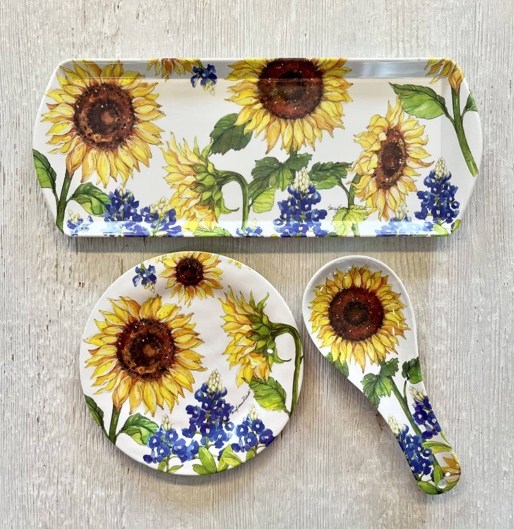 Sunflower & Bluebonnets Floral Loaf Serving Charcuterie Tray