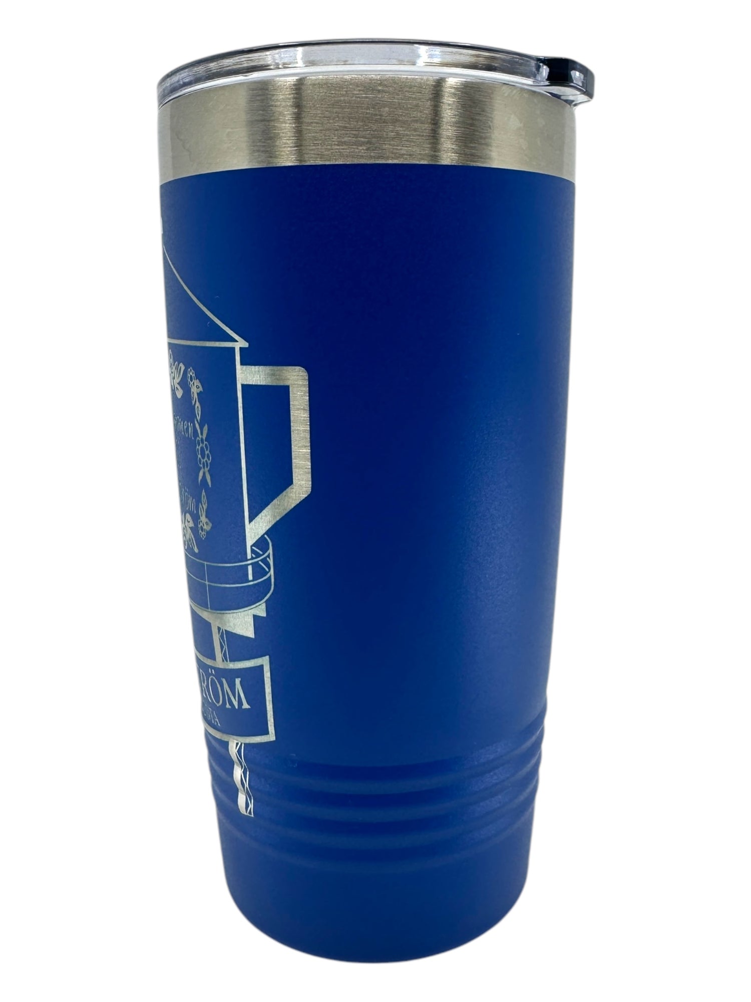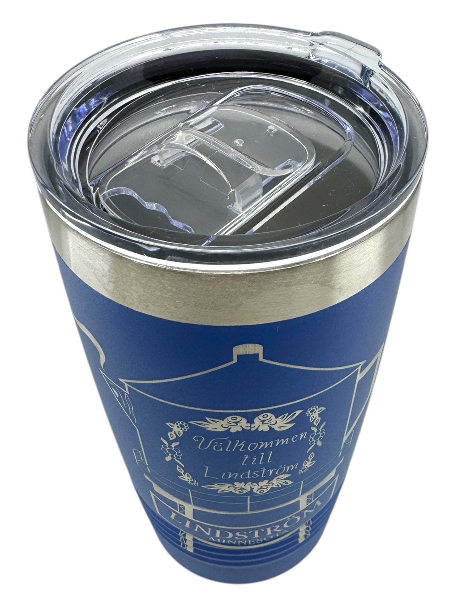 - Design: Blue tumbler featuring the Lindström Coffee Pot Water Tower