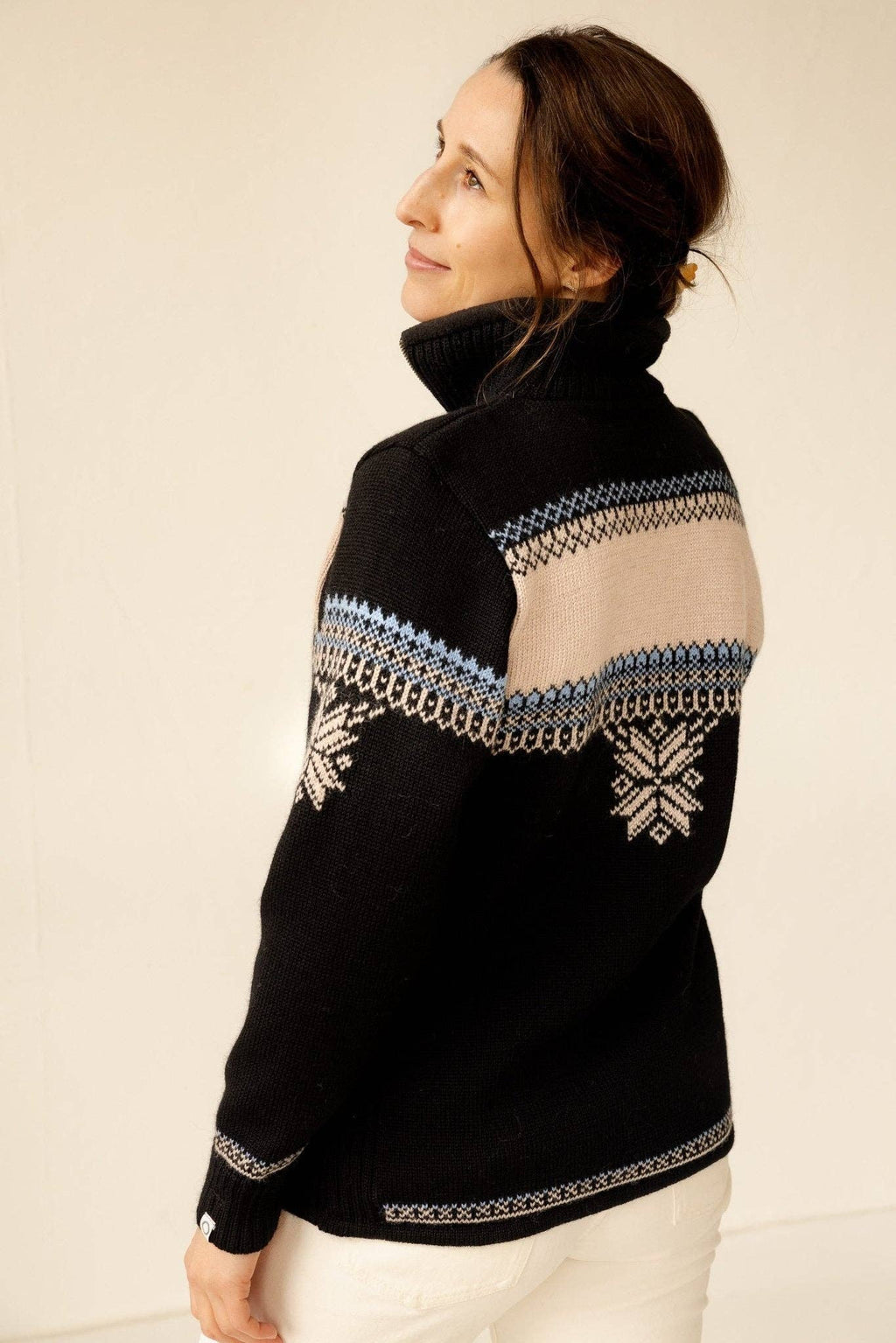 - Voss is knitted in 100% wool with a high zipped collar and a soft fleece lining.